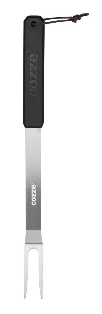 A tervezésnél kiemelt figyelmet kapott az ergonómia: a strapabíró műanyag fogantyú úgy lett kialakítva, hogy nedves vagy zsíros kézzel is stabilan tartható legyen. Az anyaghasználat garantálja a hosszú élettartamot és a korrózióállóságot, miközben a letisztult, fekete-ezüst dizájn tökéletesen illeszkedik a Cozze® modern termékcsaládjába. Legyen szó a sült hús stabilizálásáról szeletelés közben, vagy a sülő húsok ellenőrzéséről, ez a villa minden fázisban precíz munkát tesz lehetővé.