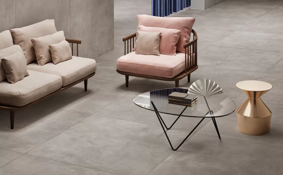 Betonhatású, középszürke porcelán lap modern terekhez – rektifikált és fagyálló kivitel