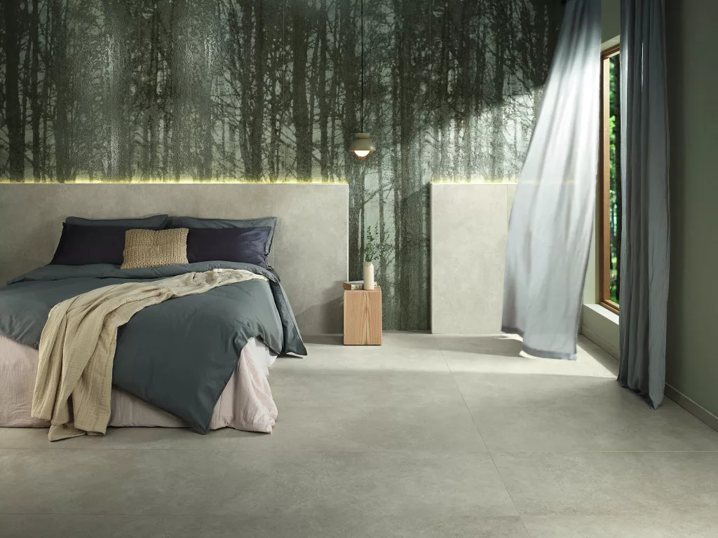 – Fürdőszobák padlójaként, ahol a kőhatású felület és R9 biztonság együtt fontos.