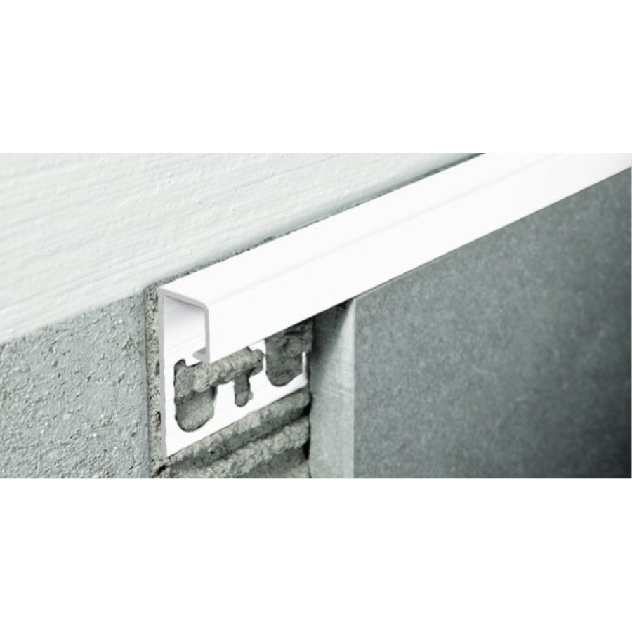 A 2,7 méteres szálhosszúság gazdaságos beépítést tesz lehetővé, biztosítva a függőleges élek toldásmentes, egységes képét a padlótól egészen a mennyezetig. A perforált rögzítőszár mélyen a csemperagasztóba kapaszkodik, így garantálja a profil stabil, elmozdulásmentes helyzetét hosszú éveken át.
